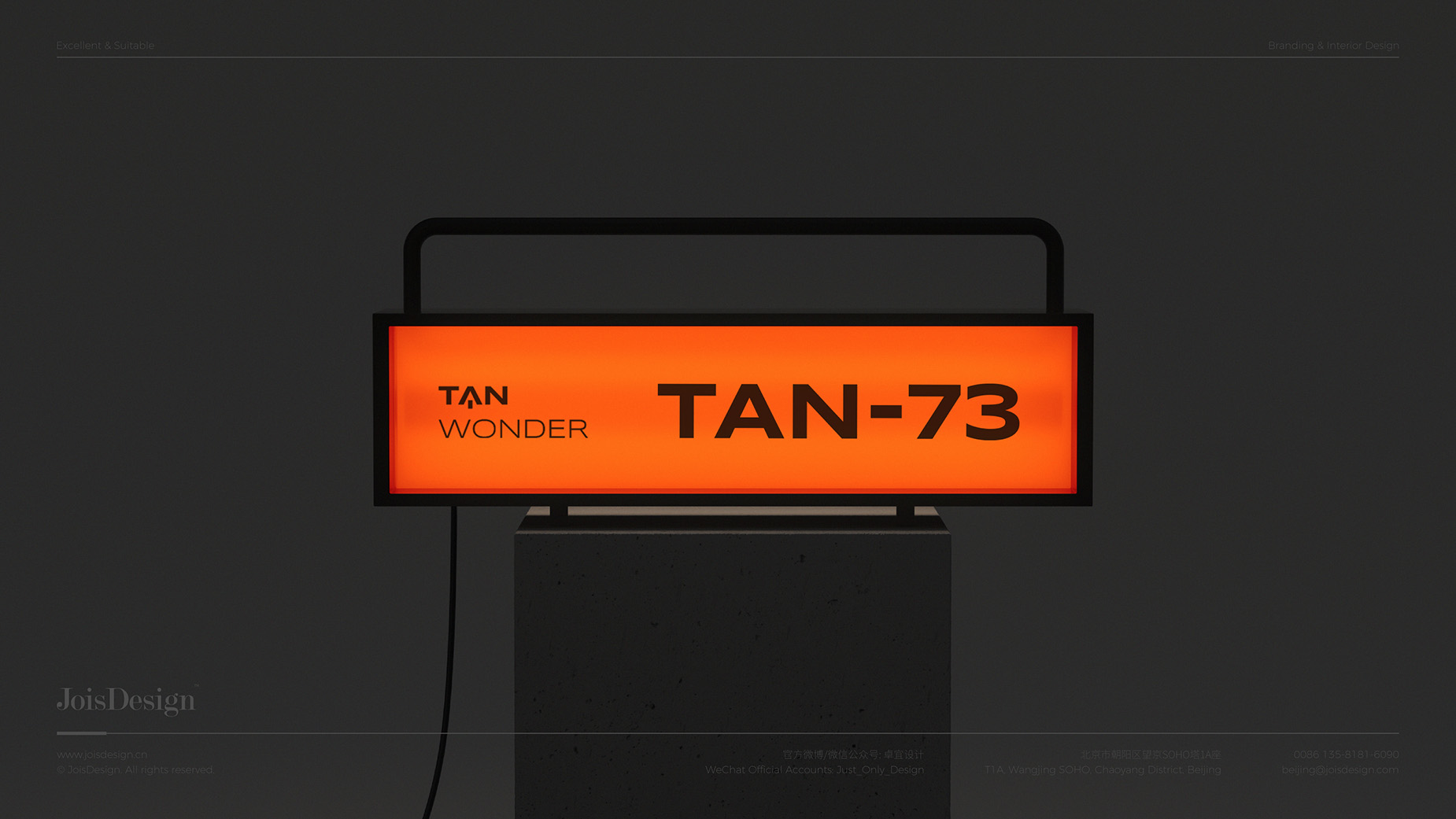 坦望一词需要拆开来看。“坦”源于“钽”,钽在电子、航空航天等高新技术领域有重要应用。我们希望通过“钽”来表达品牌在电子行业中专业的形象。在设计过程中,我们以天文望远镜为负形,由两个16.6°(钽元素密度:16.6g/cm³)的夹角组成放射的望远镜形象,致敬“钽”在航空航天领域的广泛应用,负空间天文望远镜又是字母T,开辟出的一条探索之路;标志正空间为字母A,通过切割的钽块(钽电容)给人以先进理念和